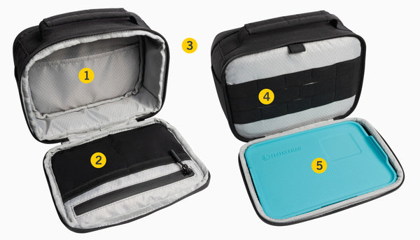 - Materials Weather-resistant Zippers, Silicone Tray, 500D Recycled Nylon Shell, Polyester Double Diamond Ripstop Lining
